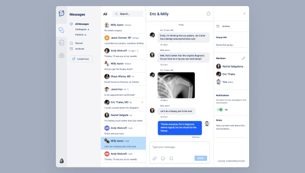 This HIPAA compliant chat app enables communication with patients, colleagues, and vendors. Rocket.Chat features omnichannel customer support, so patients can get in touch via channels such as WhatsApp, email, Twitter, Facebook Messenger, and others.